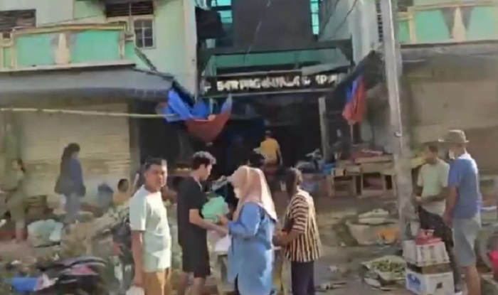 Di sisi depan pasar, sejumlah pedagang mulai membuka lapak dan berjualan bahan-bahan pokok, sayur-mayur, serta bahan bakar eceran. Meski demikian, kondisi pasar masih belum beroperasi sepenuhnya normal.