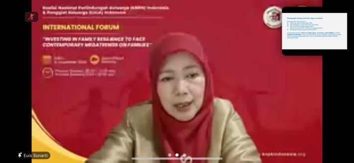 1. Prof. Dr. Ir. Euis Sunarti, M.Si. (Ketua KNPK/Ketua GiGa Indonesia, Guru Besar IPB University – Indonesia), membahas mengenai “Family Ecology Approach to Strengthening Family Resilience in Facing Global Megatrends”