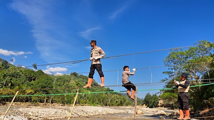 KEPOLISIAN Resor (Polres) Gayo Lues, Provinsi Aceh, membangun empat jembatan gantung untuk memudahkan akses masyarakat di wilayah terdampak bencana hidrometeorologi.