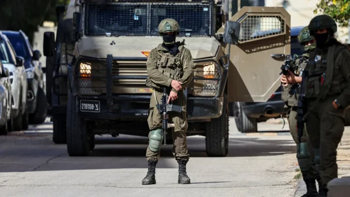 Tentara Israel mengambil posisi selama penggerebekan di Ramallah di Tepi Barat yang diduduki pada 1 Desember 2025 (Zain Jaafar/AFP)