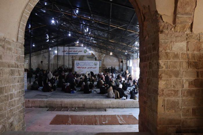 Kegiatan tersebut berlangsung di tengah reruntuhan masjid bersejarah itu yang mengalami kerusakan parah akibat serangan udara Israel.
