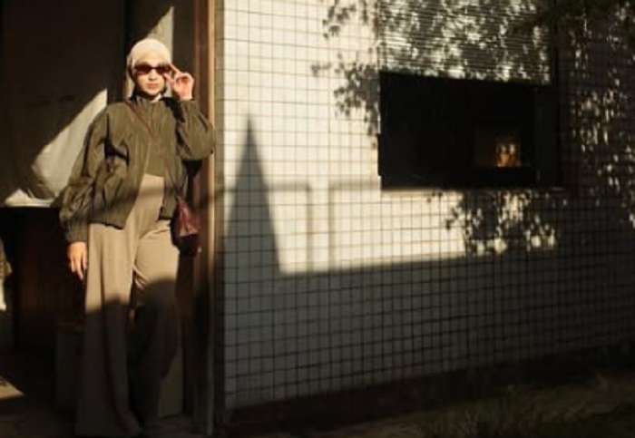 Nina juga mengenakan kerudung creme senada dengan outer berkantung dipadukan celana panjang coklatnya. Saat cafe hopping, Nina tampil dengan kerudung abu-abu bercorak dipadukan outer beige. [Din]