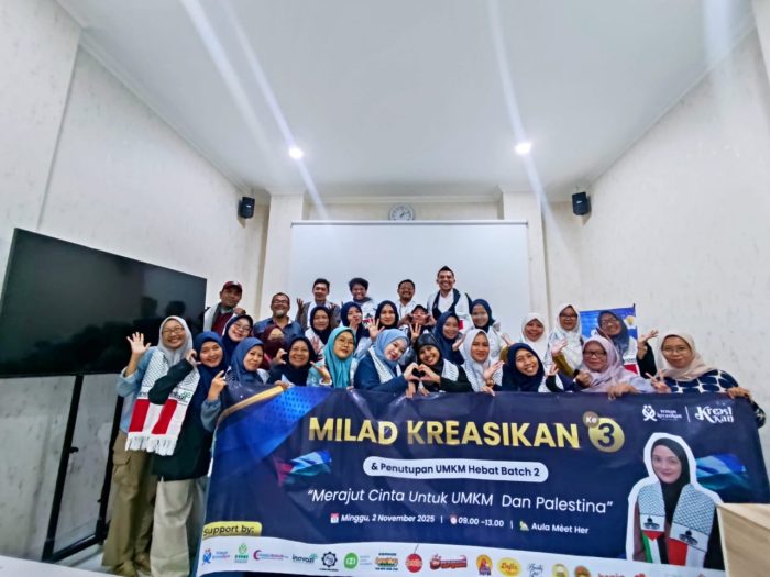 KREASIKAN kembali menghadirkan semangat kolaborasi dan inspirasi dalam perayaan Milad Kreasikan ke-3 yang dikemas bersamaan dengan Penutupan Program UMKM Hebat Batch 2, bertema “Merajut Cinta untuk UMKM dan Palestina.”