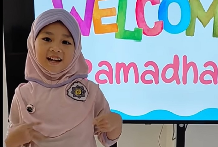 Dalam sebuah pesan berbahasa Inggris, siswa tersebut mengungkapkan kegembiraannya menyambut bulan Ramadhan sekaligus menyampaikan nilai-nilai kebaikan yang dipelajari selama bulan suci.