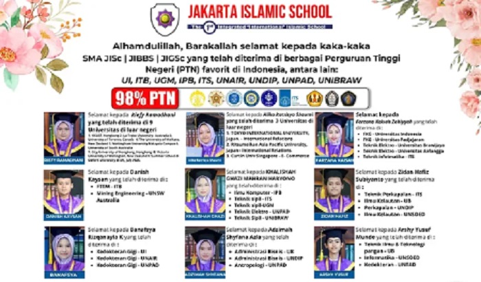 SMA Favorit dengan Ranking Tinggi, Lulusan SMA JISC JIBBS JIGSC Tersebar di Universitas Ternama