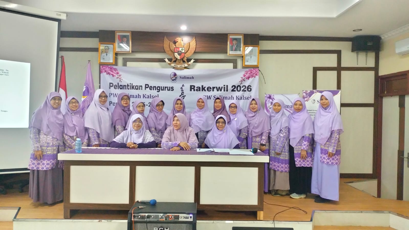 Pelantikan Pengurus PW Salimah Kalsel periode 2025-2030 dilakukan oleh Ketua PW Salimah Kalsel, Hj. Rimalia Karim, S.K.M., M.M. dengan disaksikan oleh DPSW Kalimantan Selatan; Hj. Dahliani, S.P. dan Melly Meliawati, S.Si., M.M.