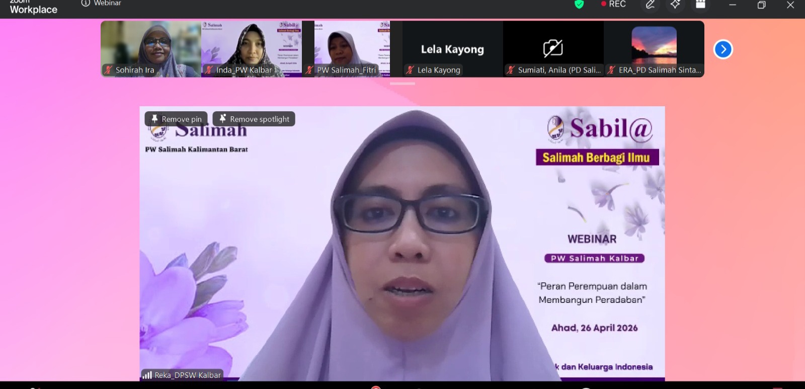 PIMPINAN Wilayah (PW) Salimah Kalimantan Barat menggelar webinar bertema “Peran Perempuan dalam Membangun Peradaban”, Ahad, 26 April 2026.
