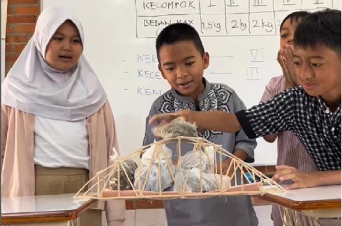Kegiatan pembuatan jembatan dari kayu balsa menjadi bukti bahwa pembelajaran kreatif mampu menciptakan lingkungan sekolah yang menyenangkan sekaligus menantang. [Din]